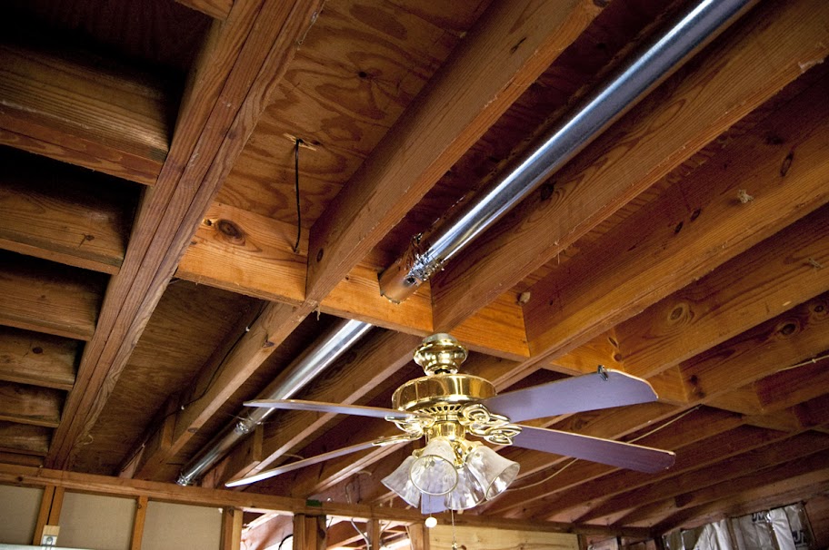 No worries things are fantastic in the Little Blue House! The venting I am referring to is the next major obstacle in renovating our kitchen! The previous owner/builder/designer anticipated building an addition which included a kitchen and living room. While I think it would basically work, we decided to do something differently. What was originally intended to be the laundry room will be converted into a full kitchen. One of the first things I did with the house was to flip around some of the plumbing so the washing machine could be located in a space in the bathroom. The dryer however is a much more tricky proposition.